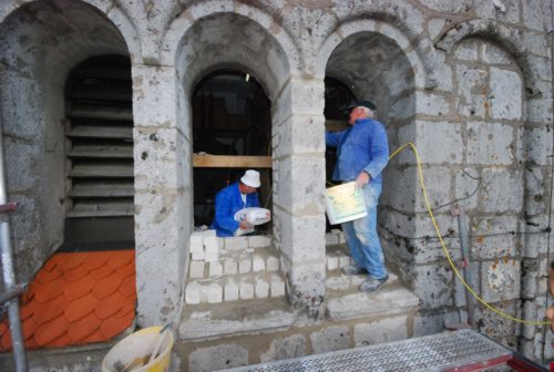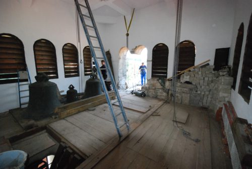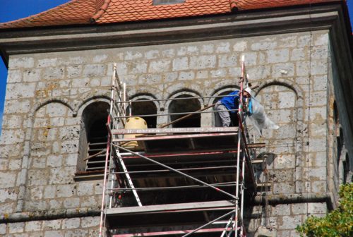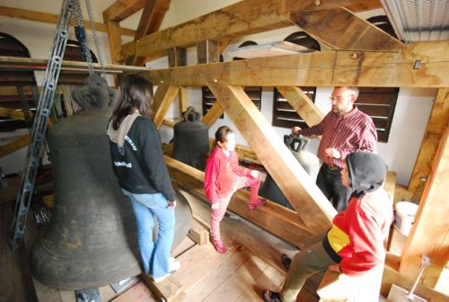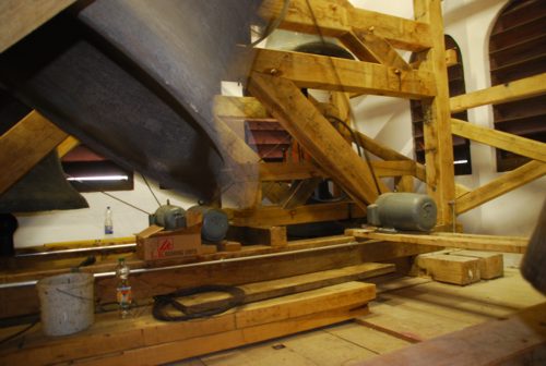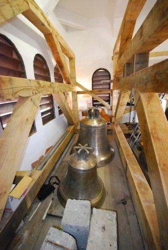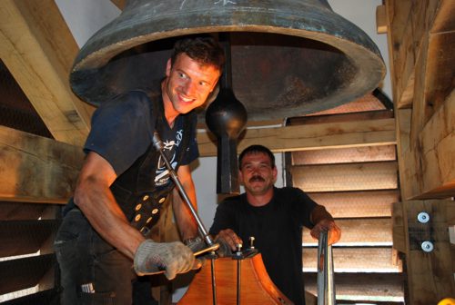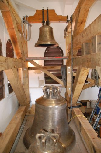montieren das Team der Glockengießerei Bachert den Glockenstuhl