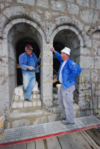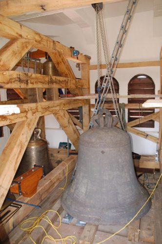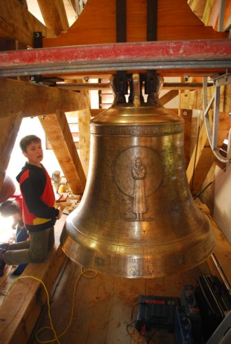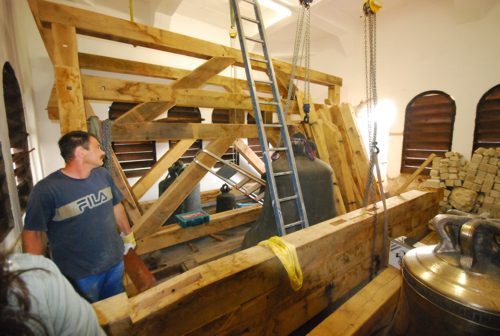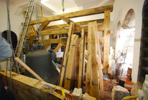 aus acht Tonnen Eichenholz. Die Glocken werden befestigt und