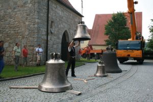 neuen Glocken, die in Karlsruhe gegossen wurden, und
