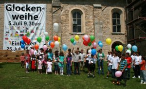 einer Malaktion des Kindergartens, die sie zur Glockenweihe