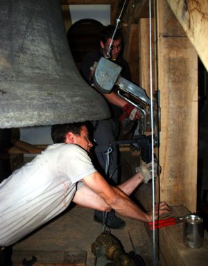 den Viertelstundenschlag durch die Monteure der Glockengießerei